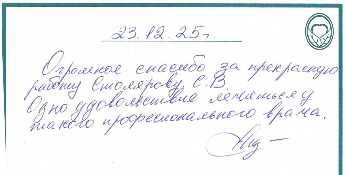 23 декабря 2025 - Огромное спасибо за прекрасную работу Столярову С.В. Одно удовольствие лечиться у такого профессионального врача.