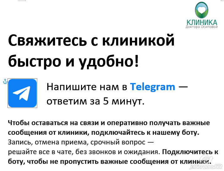 Свяжитесь с клиникой быстро и удобно! Напишите нам в Telegram — ответим за 5 минут.