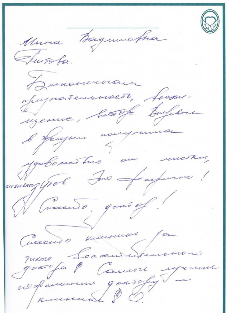 13 декабря 2025 — Инна Вадимовна Титова. Бесконечная признательность, восхищение, восторг. Впервые в жизни получила удовольствие от чистки, гигиены зубов. Это феерично! Спасибо, доктор! Спасибо клинике за такого восхитительного доктора! Самые лучшие пожелания доктору и клинике!